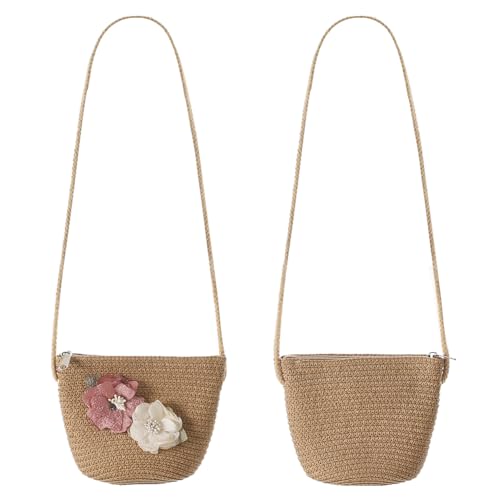 ITODA Little Girls Straw Flower Hat with Shoulder Bag Summer Beach Pool Floppy Sun Hat Wide Brim UPF 50+UV Sun Protection Cap 1