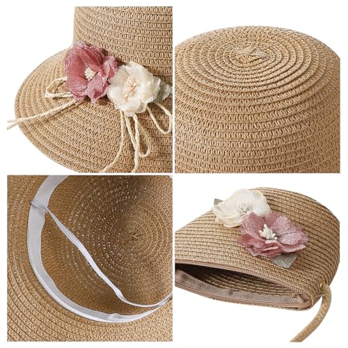ITODA Little Girls Straw Flower Hat with Shoulder Bag Summer Beach Pool Floppy Sun Hat Wide Brim UPF 50+UV Sun Protection Cap 6