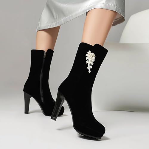 More information about Women'S Suede Pearl Pendant Platform Stiletto Heel Ankle Boots Autumn Winter Fashion Side Zipper High Heel Dress Short Booties Sexy Round Toe Heel Mid Calf Boots