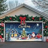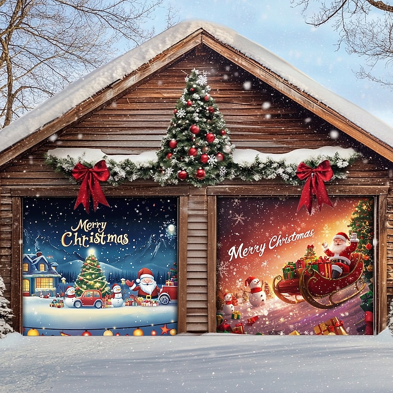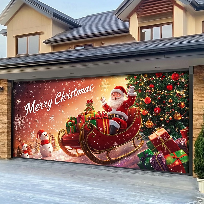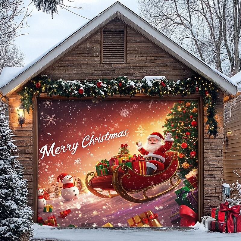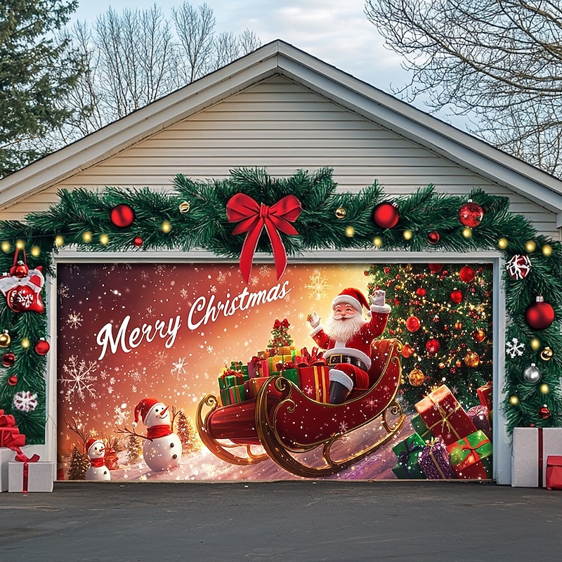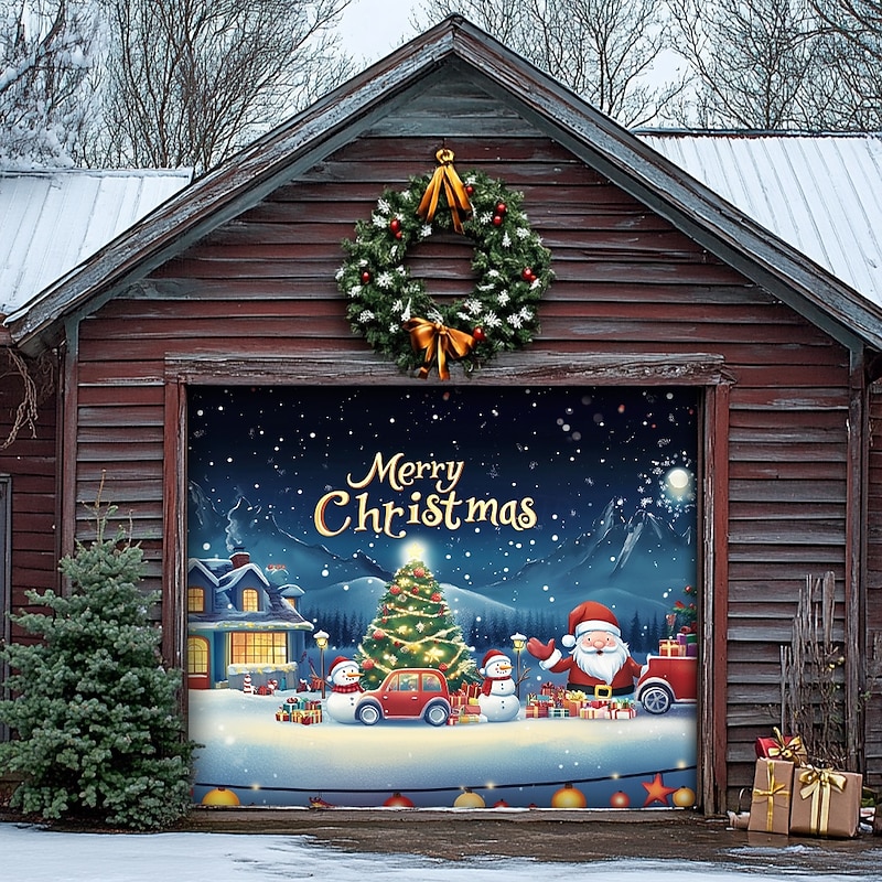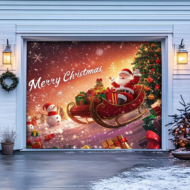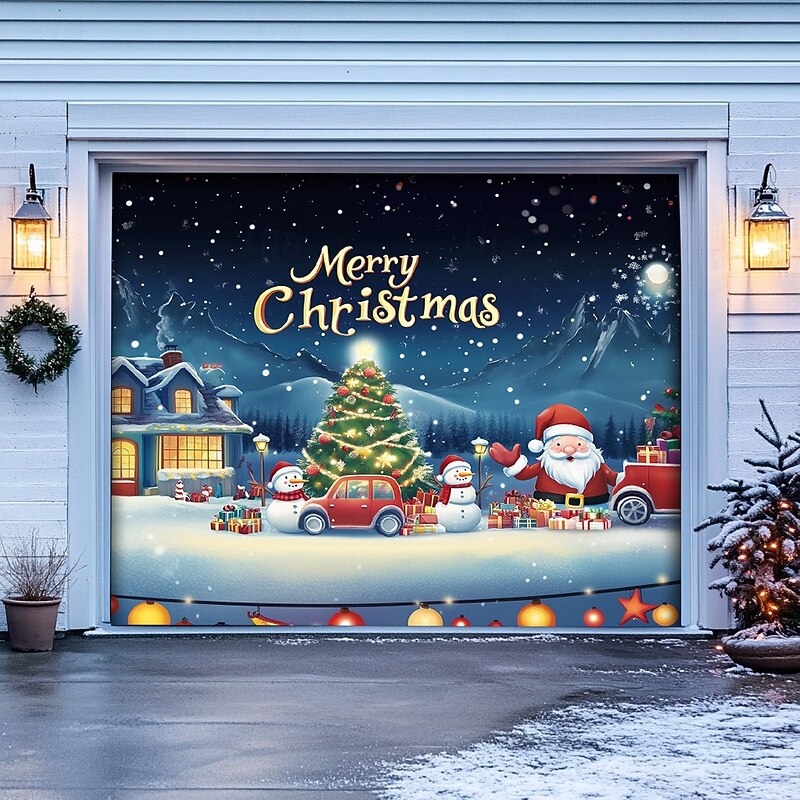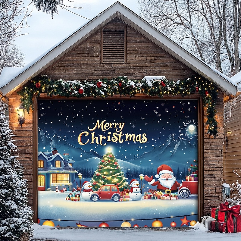 HOT ! Christmas Outdoor Garage Door Cover Xmas Banner Merry Christmas Large Christmas Backdrop Decoration for Holiday Outdoor Garage Door Home Wall Decorations