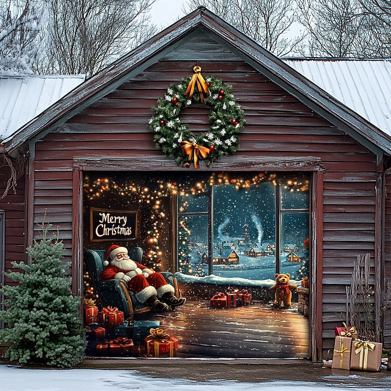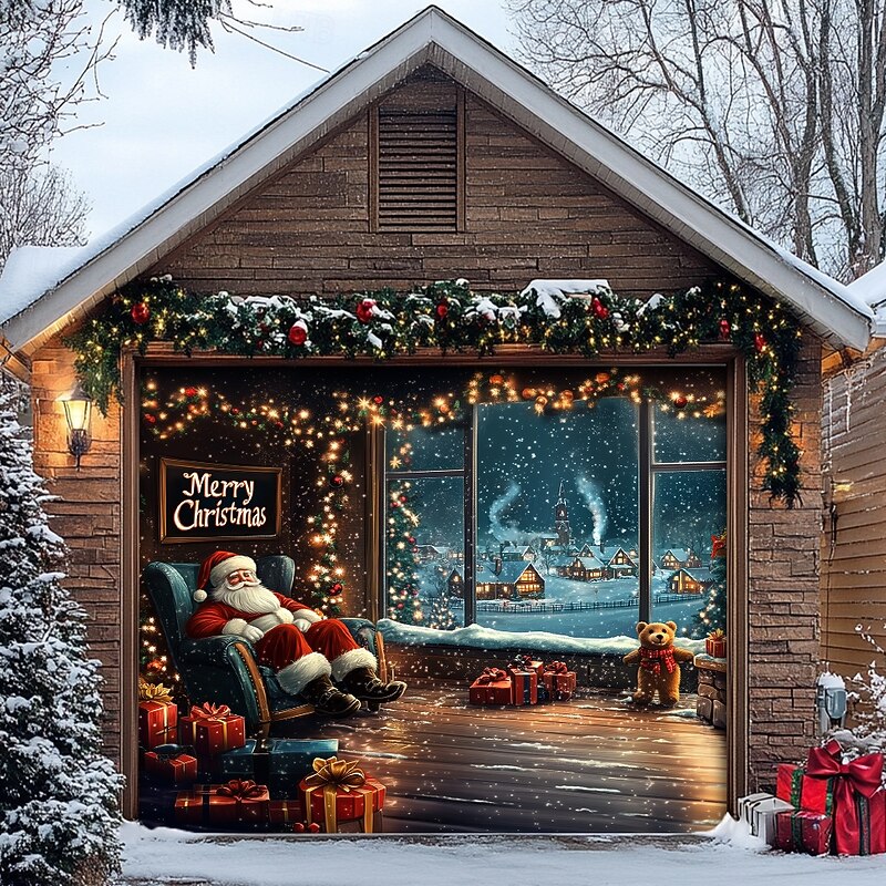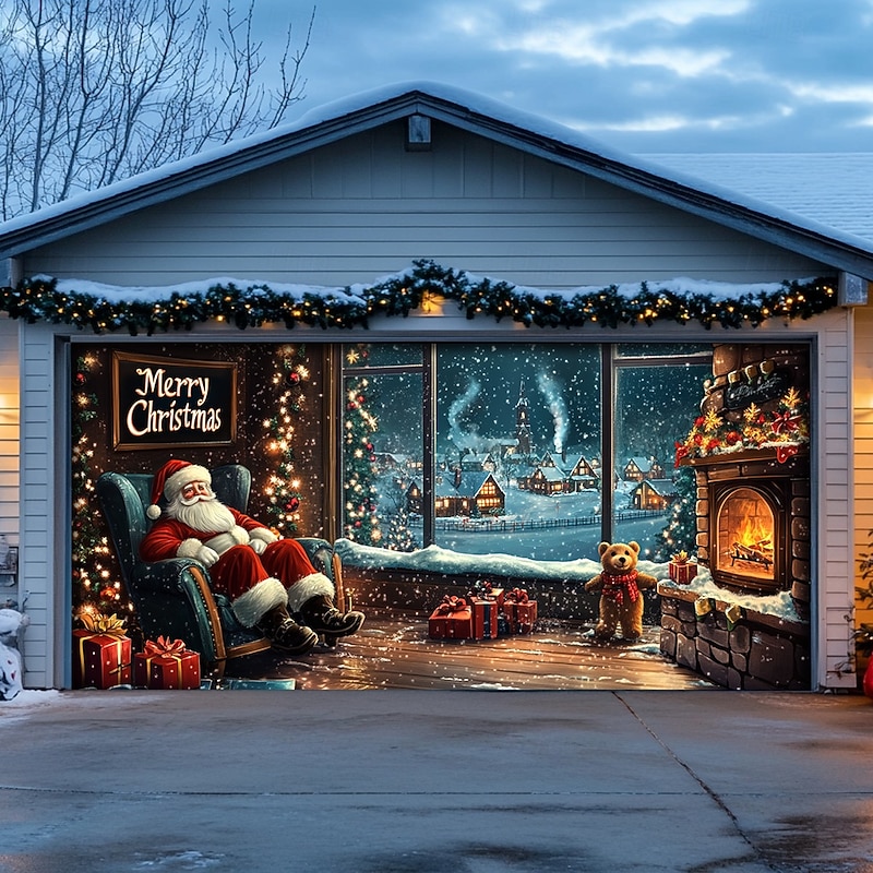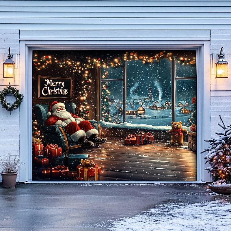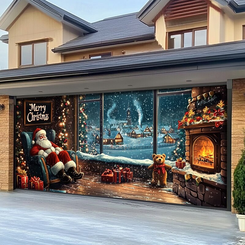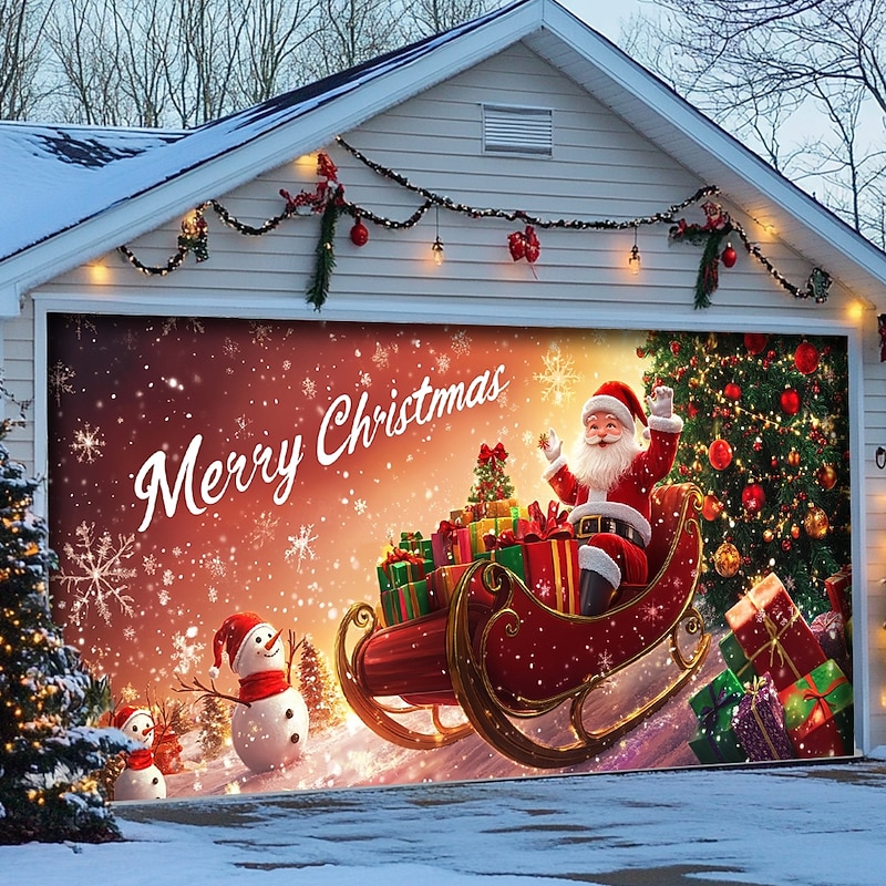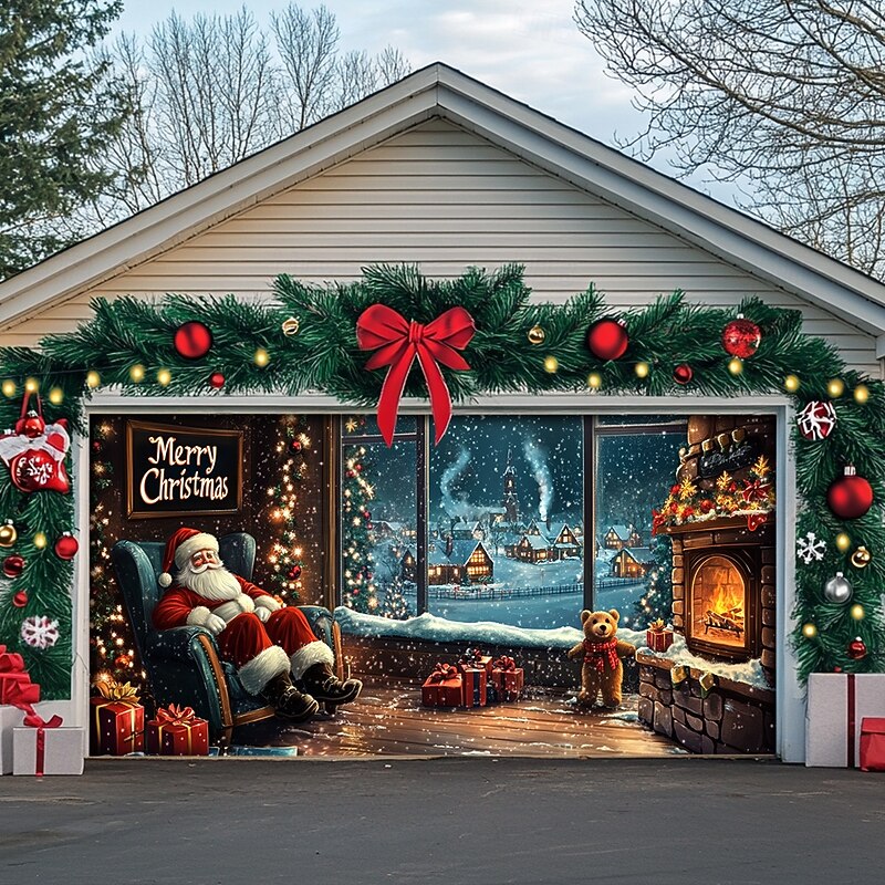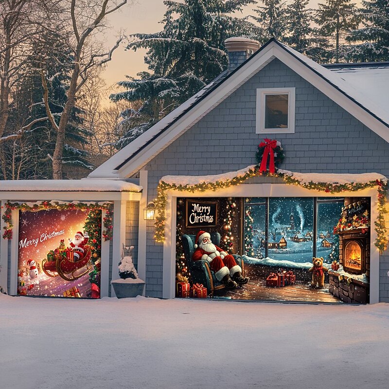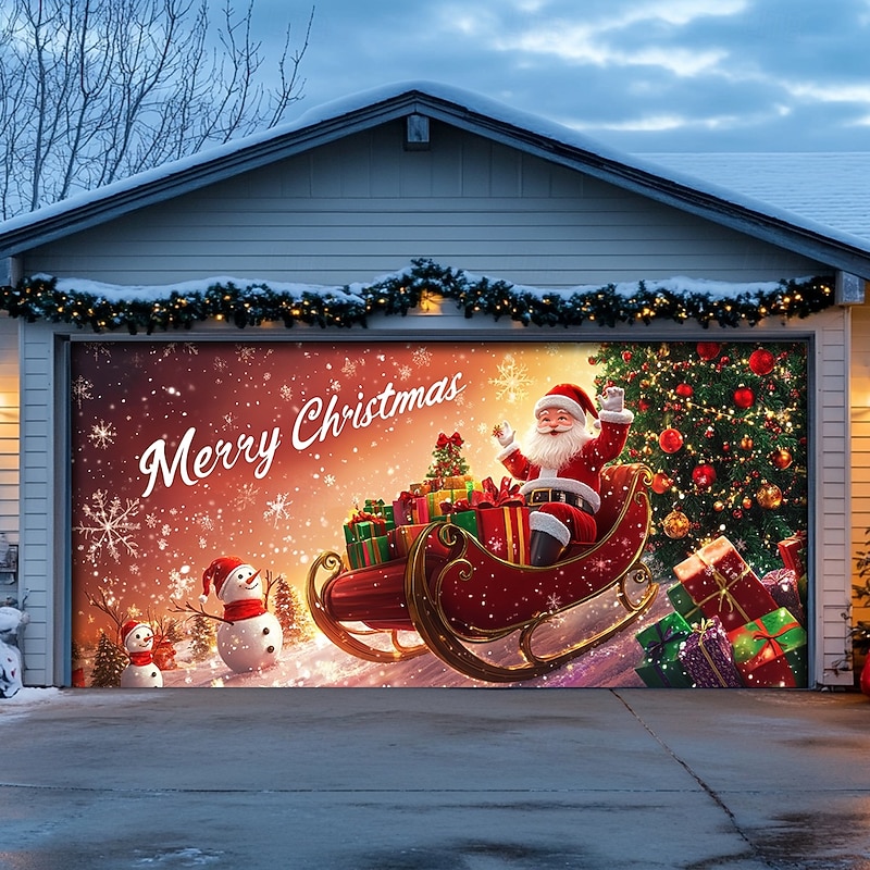 HOT ! Christmas Outdoor Garage Door Cover Xmas Banner Merry Christmas Large Christmas Backdrop Decoration for Holiday Outdoor Garage Door Home Wall Decorations
