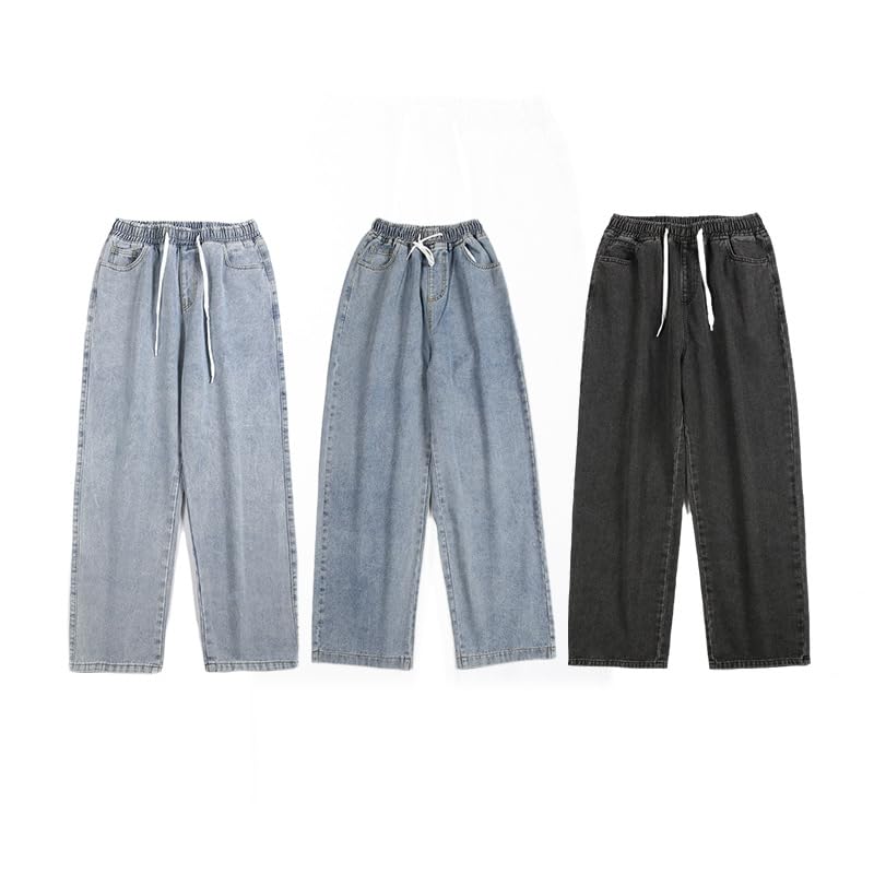 Men's Summer Pants Elastic Waist Straight Leg Jeans 3