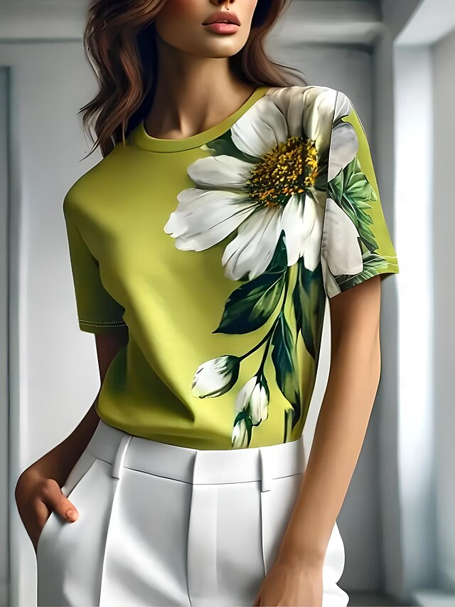 More information about Women's T Shirt Floral Graphic Plants Vintage Stylish Classic Short Sleeve Crew Neck Round Neck Regular Tops Daily Weekend Print Black Blue Purple Green Gray Summer Spring