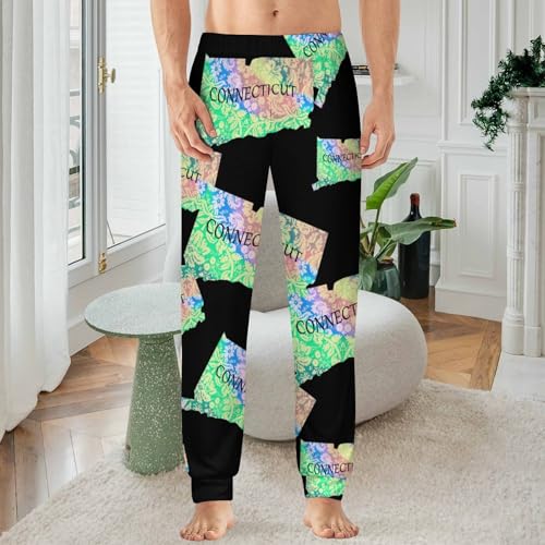 HOT ! Connecticut Map Tie Dye Men's Pajama Pants Lounge Pant Sleepwear PJ Bottoms