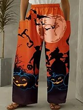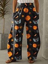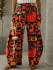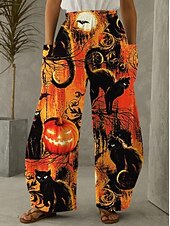 More information about Women's Wide Leg Chinos Vintage Casual Full Length Mid WaistPantsHalloween Cat Pumpkin Halloween Elastic Waistband Comfy Inelastic Vacation Street Causal Violet Brown / Gold Black Orange Spring Fall