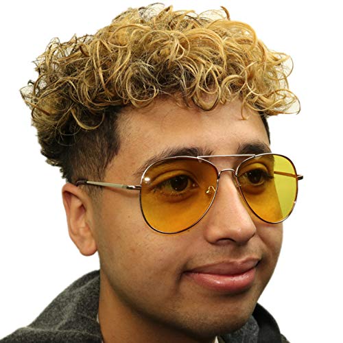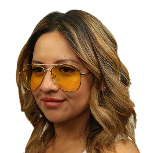 More information about ShadyVEU Oversized Retro Slim Gold Pilot Cop Style Yellow Tint Night Driving Blue Blocking 80's Vintage Sunglasses