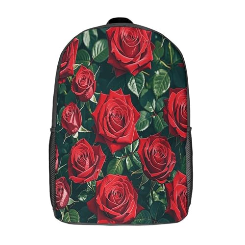 17 Inch Backpack Red Rose Romantic Print Travel Dayback Shoulder Back Pack Carry On Backpack with Adjustable Shoulder Straps 1