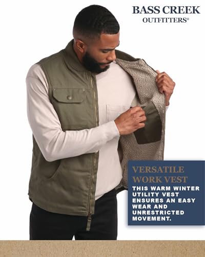 Bass Creek Outfitters Mens Duck Vest - Heavyweight Mens Vest Canvas Sherpa Lined Warm Work Vests (Sizes M-XXL) 1