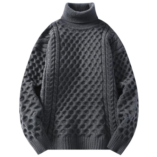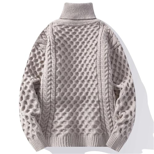 Men's Turtleneck Loose Sweater Solid Color Casual Knitted Pullover Thick Warm Knit Pull 1