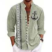 More information about Men's Geometric Anchor Shirt Stand Collar Shirt Long Sleeve Vintage Retro Vacation Daily Wear Going out Spring Fall Mandarin Collar Band Collar Button-Down Linen Like Shirt Light Green