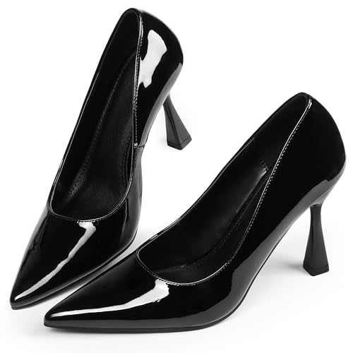 • Stiletto Heels, Pointed Toe, Patent Leather Upper, Fashion Dress Pumps