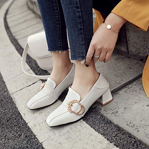 • ➤FINEST QUALITY & COMFORTABLE】: Womens Ladies Pointed Toe Pump Shoes, Simple Sleek Buckle Strap vamp;Easy On/Off; Slip On Loafers Anti-slip Platform Lightweight, High Strength, Good Fexibility, Finished with Lightly Cushioned for All Day Comfy and Eco-Friendly Design. Instep ventilation pores for your comfort.