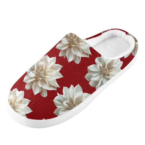 HOT ! JUNZAN Aesthetic Dahlia Red Mens House Cotton Slipper Warm Memory Foam Foam Slippers for Spa Christmas Presents 6-7