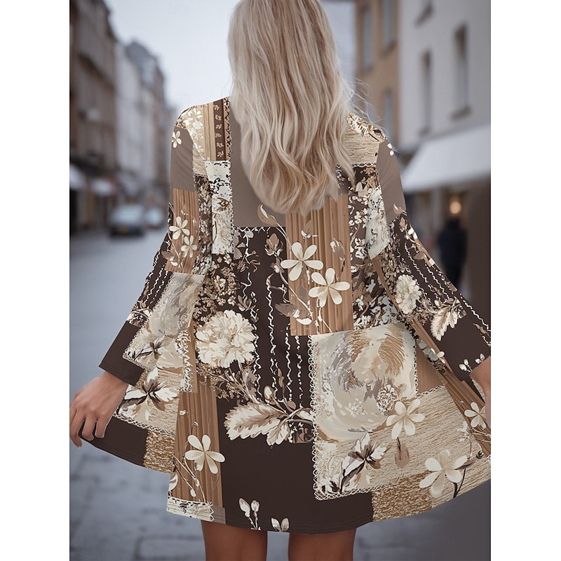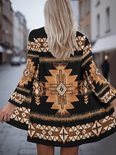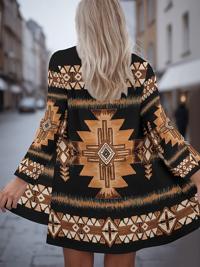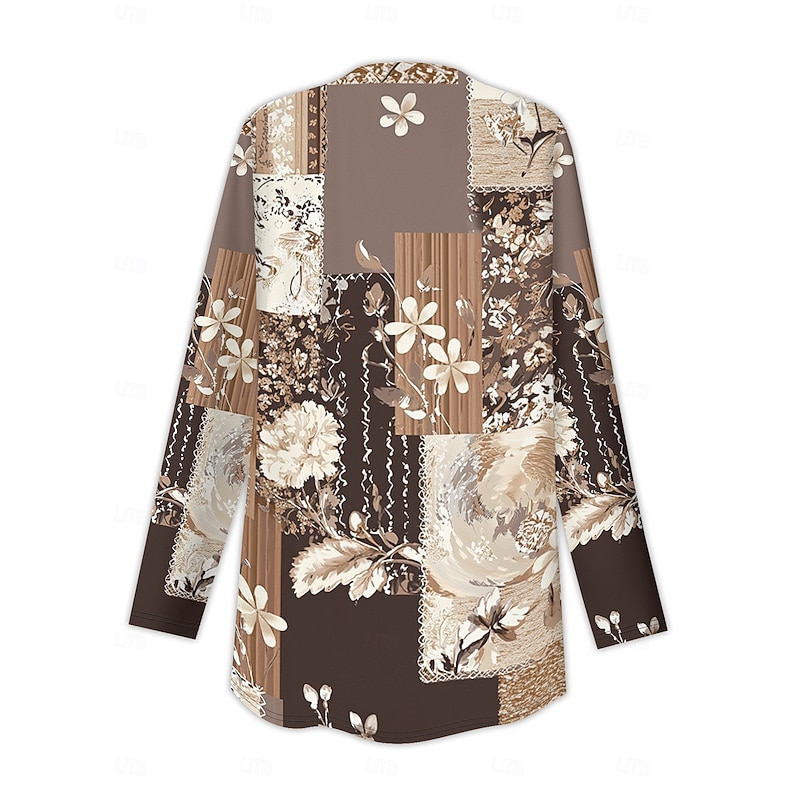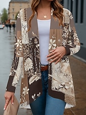 More information about Women's Winter Coat Trench Coat Lightweight Comfortable Print Open Front Vintage Fashion Casual Boho Vintage Geometric Vacation Casual Long Collarless Regular Fit Long Sleeve Outerwear Black Beige