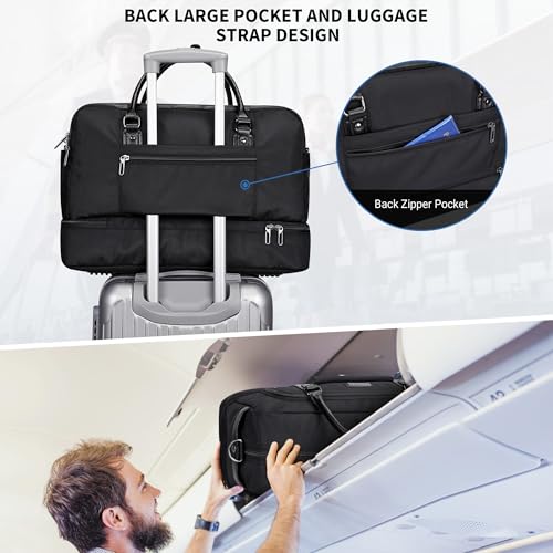 WITZMAN Weekender Bags for Men Women Carry On Duffle Overnight Bag with Toiletry Bag Sets Travel Duffel Bag Shoes Compartment (B694 Black) 6