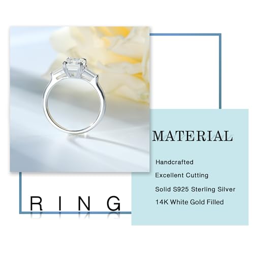MOOSEA 3 Stone Moissanite Rings for Women, 2ct Radiant D Color VVS1 Clarity Lab Created Moissanite Rings 14K White Gold Vermeil Double Claw Radiant Cut Moissanite 3 Stone Rings for Women Mom Wife Gift 3