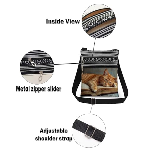 HOT ! Orange Cat Book Print Crossbody Bag Birthday Holiday Present for Women & Adult Teens Sister Christmas Gift for Men Travel Adjustable Shoulder Strap Messenger Bag