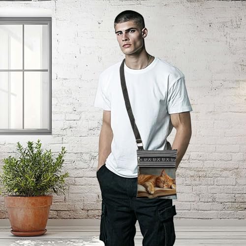 Orange Cat Book Print Crossbody Bag Birthday Holiday Present for Women & Adult Teens Sister Christmas Gift for Men Travel Adjustable Shoulder Strap Messenger Bag 7
