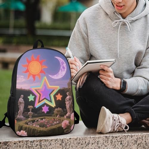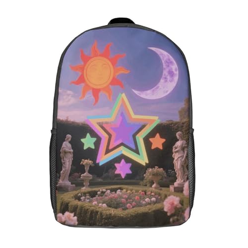 More information about Vintage Sun Moon Stars Backpack - Durable 600D Polyester, 17 Inch Backpack with Ergonomic Adjustable Straps, Lightweight Travel Bag for Men & Women