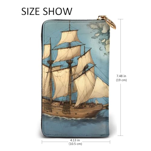 HOT ! Leather Wallet - Stylish and Durable Wallet for Women with Multiple Compartments and Zipper Design Sailboat drifting on the sea Map Picture