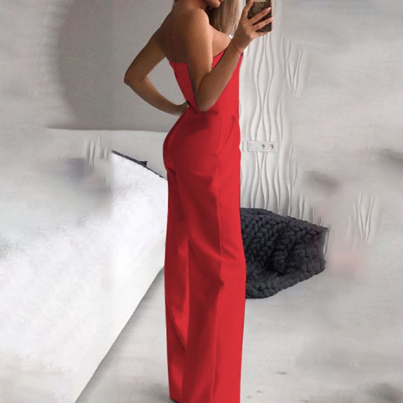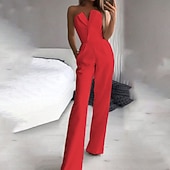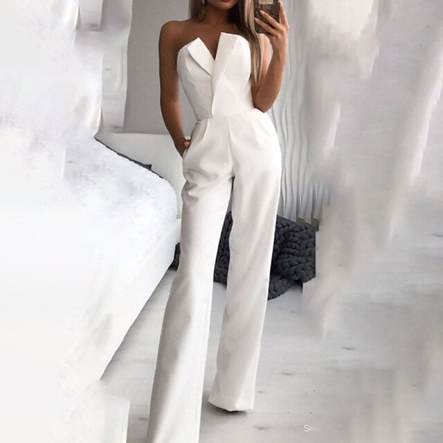 Women's Jumpsuit Clean Fit Wedding High Waist Solid Color Strapless Streetwear Street Going out Regular Fit Sleeveless Red White Summer Fall
