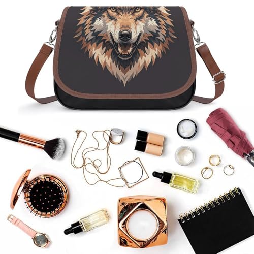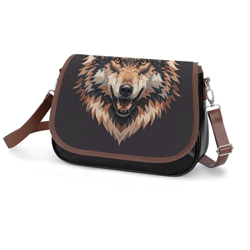 PU Leather Crossbody Bag Coyote Pattern Print Flapover Tote Bag Shoulder Handbag Purse for Women with Adjustable Strap 1