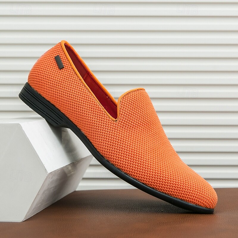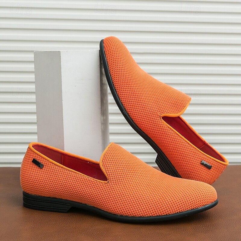 Men's Bright Orange Breathable Mesh Loafers – Casual Prom Party Slip-On Shoes for Summer Events 24