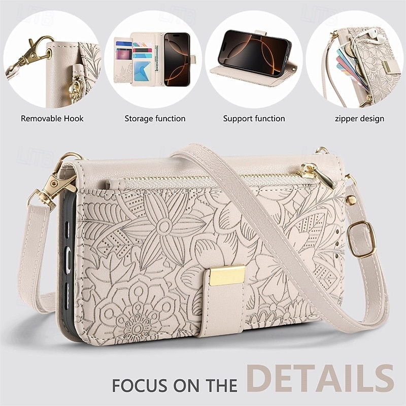 More information about Phone Case For iPhone 17 Pro Max 17 Air 16 15 14 Pro Max Plus 16e 13 Pro Max Wallet Case Zipper with Lanyard Kickstand Retro TPU PU Leather