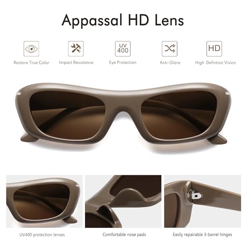 • UV400 Lens Protection: Appassal cool sunglasses are equipped with UV400 lenses that block harmful UV rays, protecting your eyes from sunlight and reducing fatigue.It also enhance visual contrast, providing a clear view under the sun,perfect for outdoor activities.