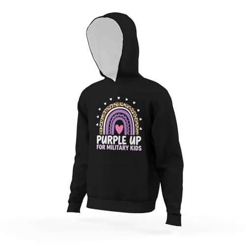 More information about Vintage Purple Up for Military Kid Month Military Child Rainbow Hoodies for Teen Girls Boys Kangaroo Pocket Sweatshirt