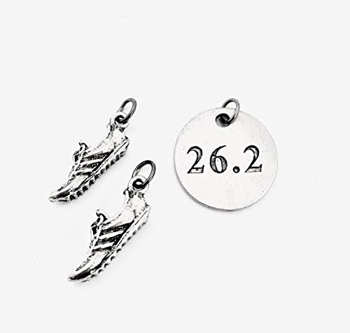 • PAIR OF RUNNING SHOE CHARMS 26.2 ROUND PEWTER PENDANT SET Includes TWO (2) Pewter Running Shoe Charms AND ONE (1) 7/8 inch Round Pewter 26.2 Marathon Charm