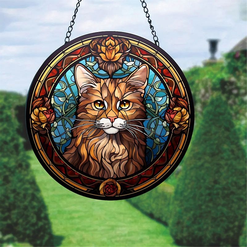 HOT ! Sunflower Stained Suncatcher Window Hanging, Dog Cat Home Window Decor Suncatcher Birthday Gifts For Women,Mom,Teacher Wreath Sign, Christmas Xmas Decor Gift