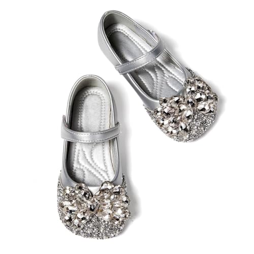 Girls Rhinestone Mary Jane Dress Shoes Wedding Flower Bridesmaids Glitter Princess Shoes for Kids Toddler 4