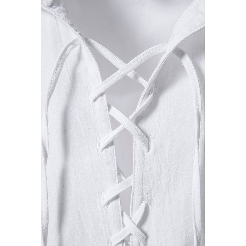 Highlights [Fabric]: Crafted from a lightweight and breathable cotton-linen blend, this shirt offers a perfect combination of softness and durability, ideal for keeping cool and comfortable in warm weather. [Fit]: With its relaxed fit, this shirt provides a laid-back style that is both comfortable and effortlessly stylish, making it a versatile addition to any summer wardrobe. [Design Highlights]: Featuring a unique lace-up V-neck and a hood, this design brings a modern and slightly rugged appeal. The short-sleeve style and the addition of a drawstring provide a casual yet sophisticated look. [Occasions]: Perfect for vacation, holiday outings, or casual gatherings, this shirt is versatile enough for Hawaiian get-togethers, beach trips, or any relaxed occasion, offering both charm and comfort. [Size Range]: Available in sizes S, M, L, XL, and 2XL, accommodating a wide range of fits to ensure the perfect match for every individual's style and comfort preferences.