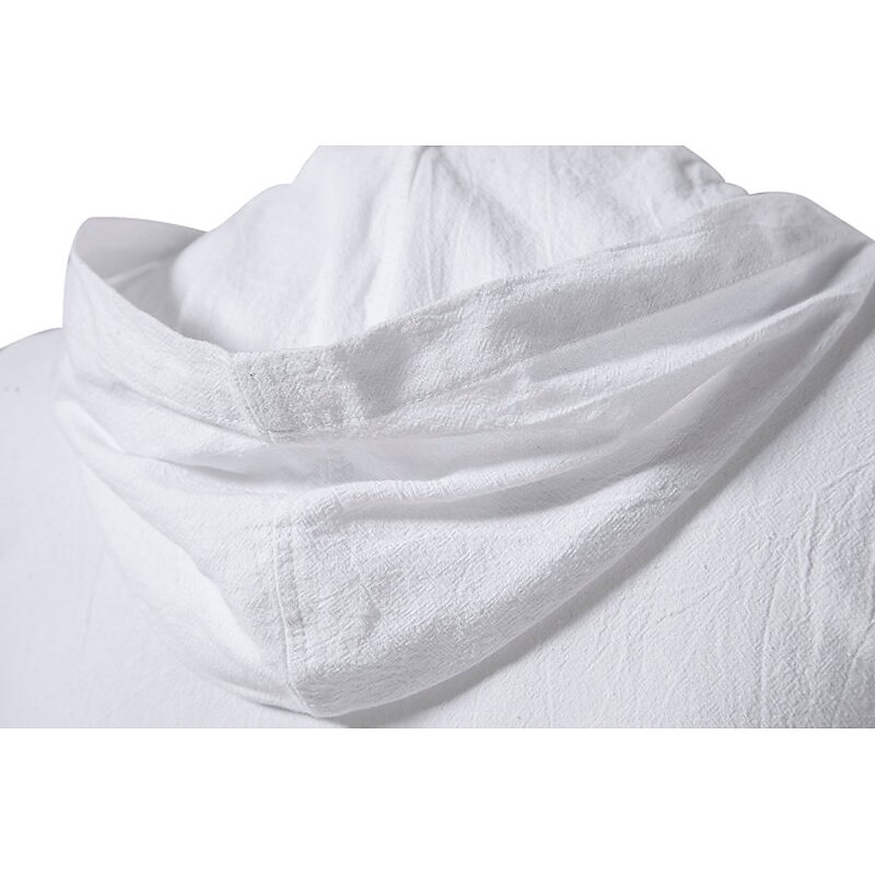 Men's Cotton Linen Shirt Summer Shirt Casual Shirt Beach Shirt Solid Color Vacation Casual Black White Khaki Dark Blue Short Sleeve Hooded Summer Clothing Apparel Drawstring 9
