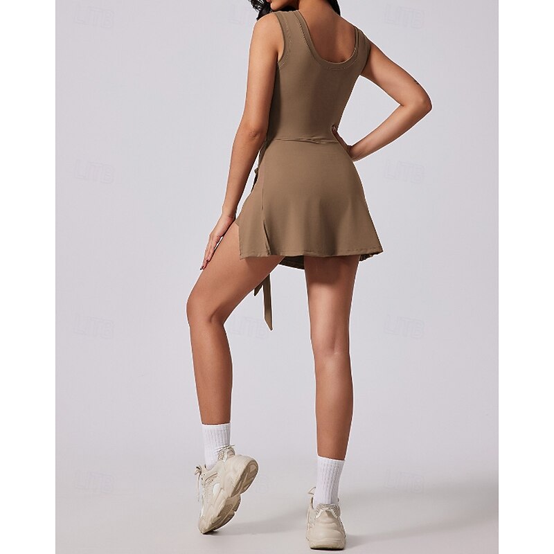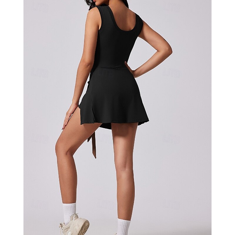 More information about Women's Solid Colored Tennis Dress with Shorts Sports Dress Sleeveless Side Split Moisture Wicking Breathable Tennis Golf Pickleball Square Neck Dress Black Cream Dark Navy Tennis Clothing