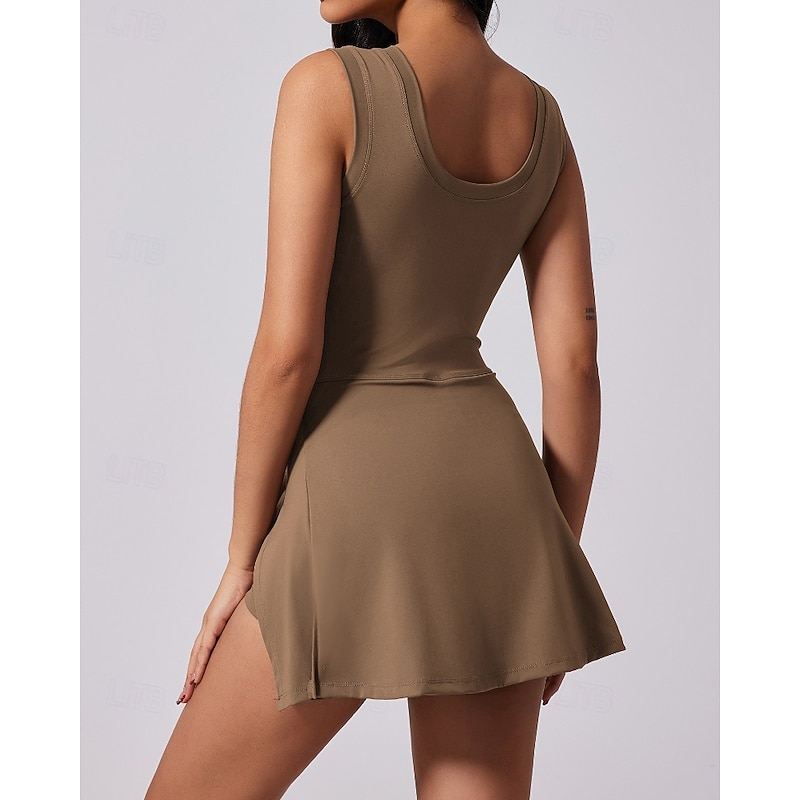 Women's Solid Colored Tennis Dress with Shorts Sports Dress Sleeveless Side Split Moisture Wicking Breathable Tennis Golf Pickleball Square Neck Dress Black Cream Dark Navy Tennis Clothing 17