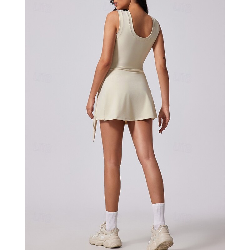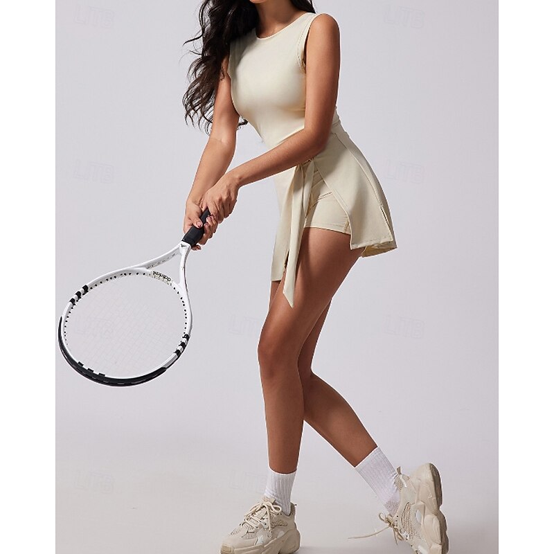 HOT ! Women's Solid Colored Tennis Dress with Shorts Sports Dress Sleeveless Side Split Moisture Wicking Breathable Tennis Golf Pickleball Square Neck Dress Black Cream Dark Navy Tennis Clothing