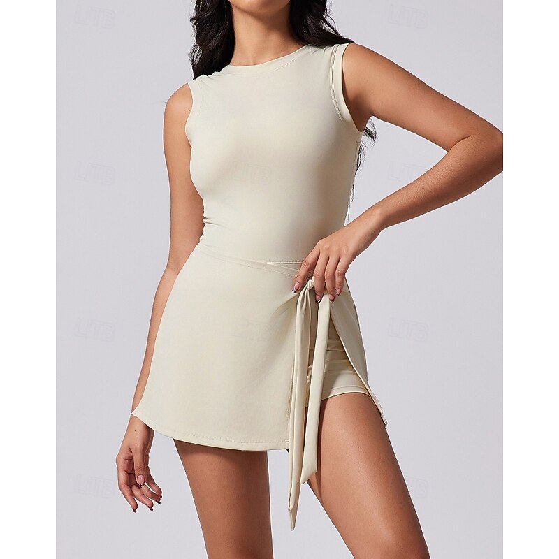 Women's Solid Colored Tennis Dress with Shorts Sports Dress Sleeveless Side Split Moisture Wicking Breathable Tennis Golf Pickleball Square Neck Dress Black Cream Dark Navy Tennis Clothing 21