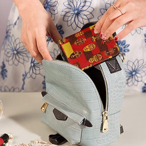 Leather Wallets for Women Credit Card Protector RFID Blocking Small Travel Wallet with Zipper Cool Tribal African Face 5