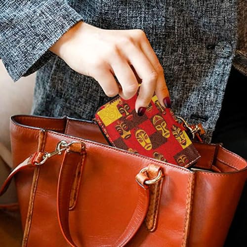 HOT ! Leather Wallets for Women Credit Card Protector RFID Blocking Small Travel Wallet with Zipper Cool Tribal African Face