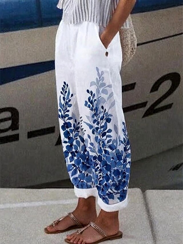 More information about Women's Chinos Vacation Vintage Ethnic Style Ankle-Length High Waist Floral Graphic Leaf Pocket Soft Outdoor Breathable Inelastic Vacation Street Causal White-Blue Purple Green Khaki Summer Spring