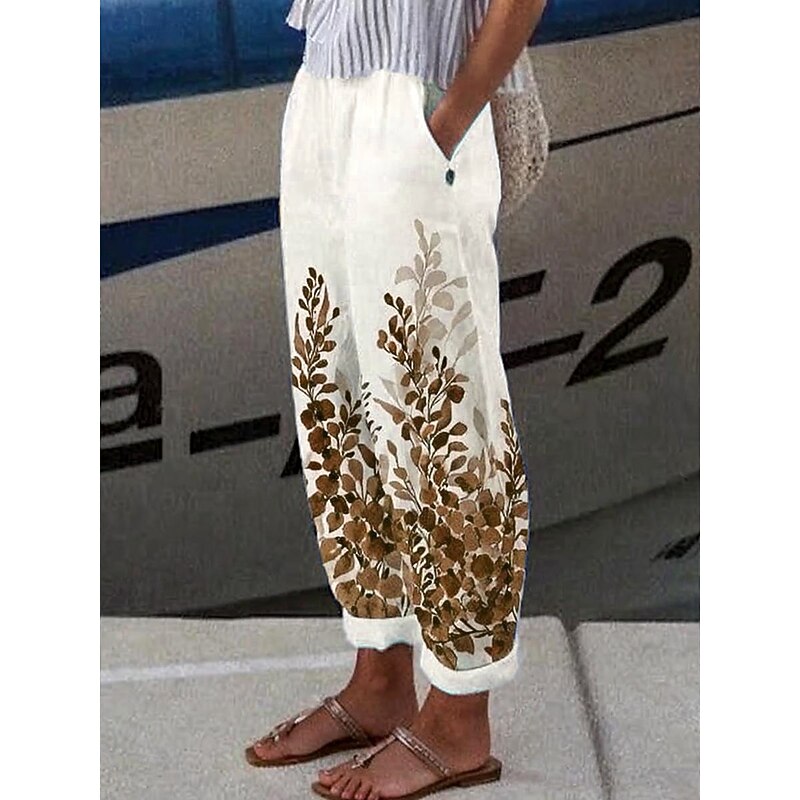 HOT ! Women's Chinos Vacation Vintage Ethnic Style Ankle-Length High Waist Floral Graphic Leaf Pocket Soft Outdoor Breathable Inelastic Vacation Street Causal White-Blue Purple Green Khaki Summer Spring