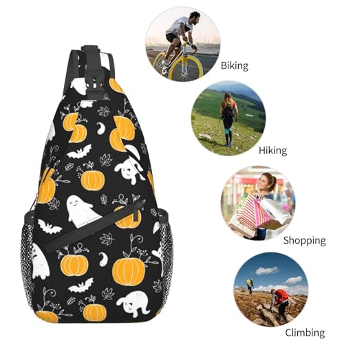 Horror Halloween Sling Backpack,Cute Ghost Pumpkin Crossbody Shoulder Backpack Adjustable Sling Bag for Men Women 1