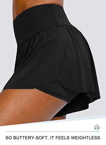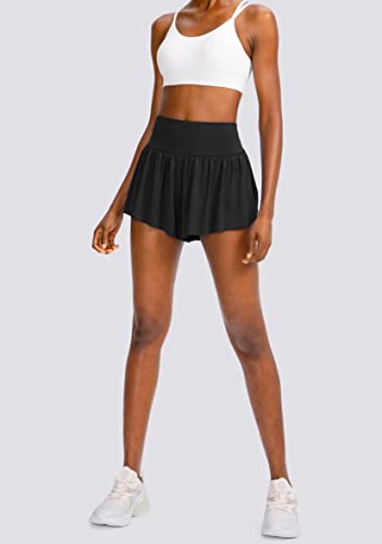Flowy Running Shorts for Women with 4 Pockets 2 in 1 High Waisted Women's Butterfly Workout Athletic Tennis Skirt Shorts 2