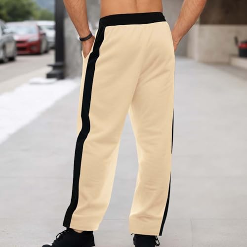 HOT ! Sweatpants for Men Baggy Straight Leg Sweat Pants Fall Winter Casual Drawstring Striped Workout Joggers with Pockets