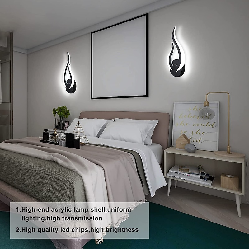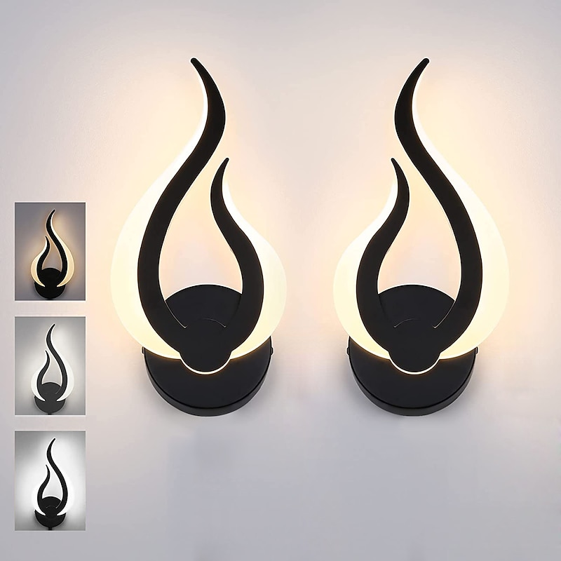 2PCS Modern Acrylic Indoor Wall Light LED Wall Lamp Optional Dimming Two-color Black Wall Mounted Wall Lamp Suitable for Home Office Bar AC85-265V 10