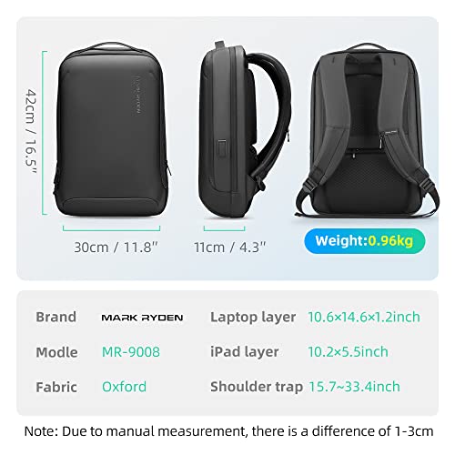 HOT ! MARK RYDEN Slim Laptop Backpack for Men, High Tech Backpack with Scratch Resistant Shell and USB Charging Port, Waterproof Business Backpack Ideal for Working, Commuting, Daily