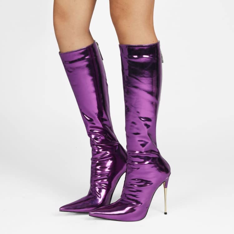 sexytag Women's Metallic Knee High Boots Stiletto Heel Pointed Toe Fashion Pull-on Back Zipper Ankle Boots 6