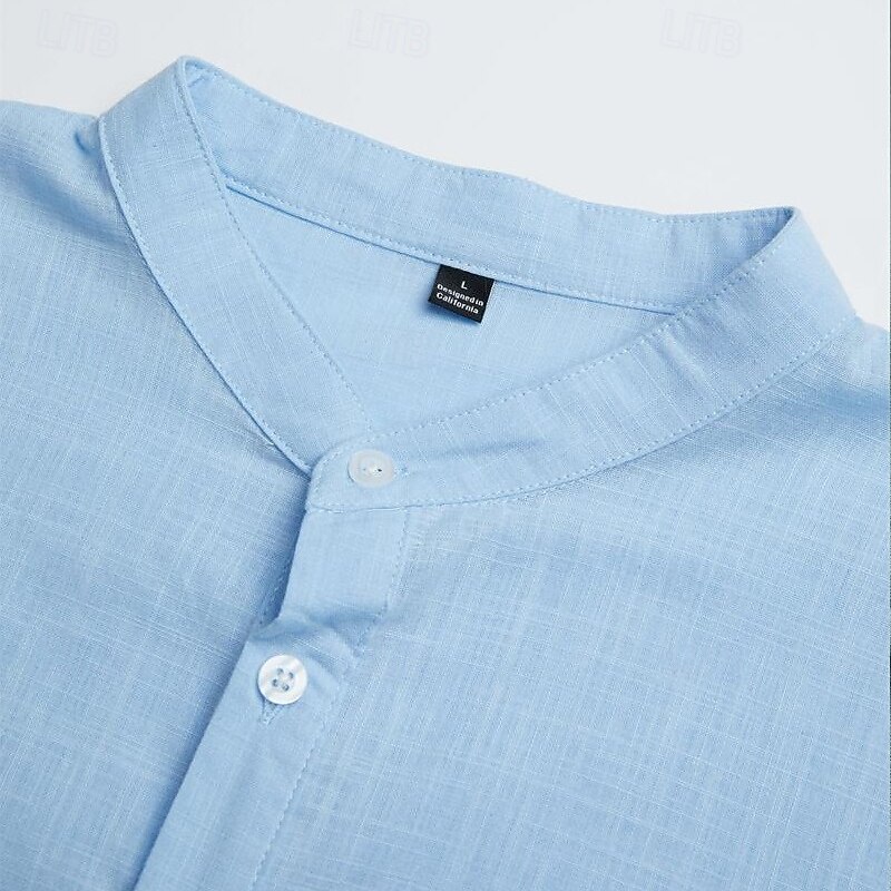 Men's Linen Shirt Band Collar Shirt Popover Shirt Casual Shirt Beach Shirt Plain Vacation Holiday Black White Pink Orange Long Sleeve Henley Summer Spring & Summer Clothing Apparel 5